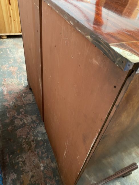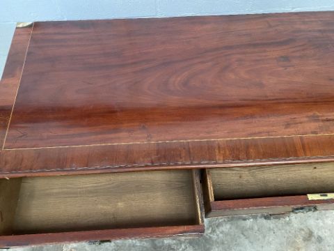 CHEST OF DRAWERS - 19th Century mahogany with three long and two short drawers and brass octagonal drop handles, 100cms H, 115cms W, 52cms D