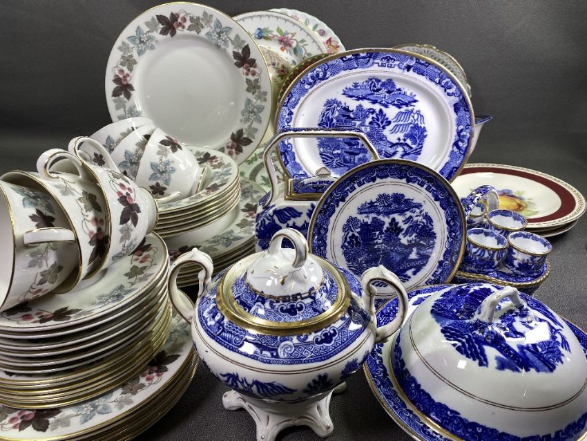 BLUE & WHITE TABLEWARE, Royal Doulton 'Camelot' tea and dinnerware, approximately thirty five pieces and an assortment of other china