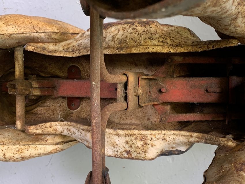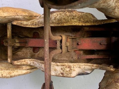 VINTAGE MOBO TINPLATE RIDE-ON HORSE, 76cms H, 70cms L