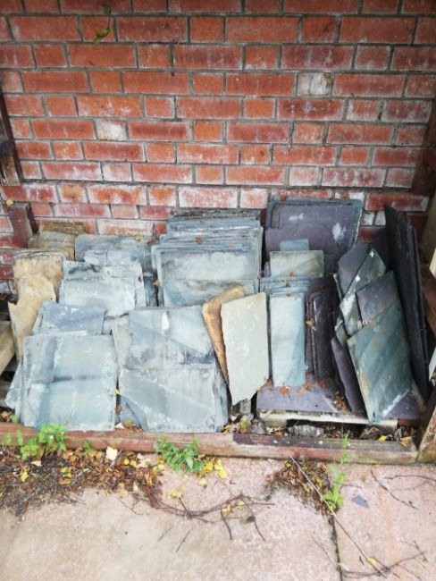 QUANTITY OF SLATE SLABS - 5ft x 2ft x 2ft the largest, approximately fifteen, plus others smaller, collection to be arranged from Caernarfon