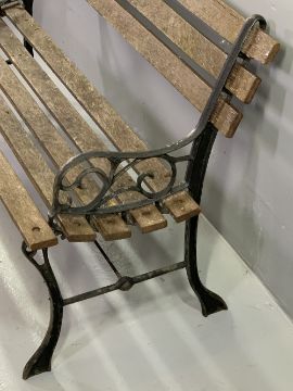 GARDEN BENCH with cast metal ends and wooden slats, 69cms H, 123cms W, 55cms D