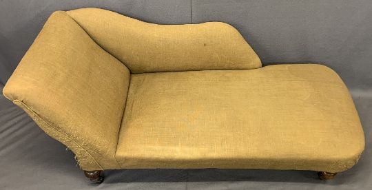 CIRCA 1900 CHAISE LOUNGE - on turned supports and castors, 68cms H, 155cms L, 67cms D