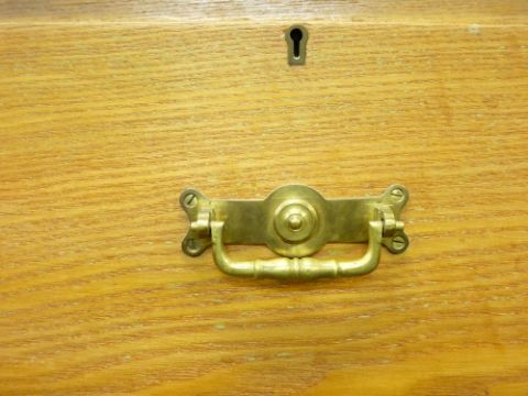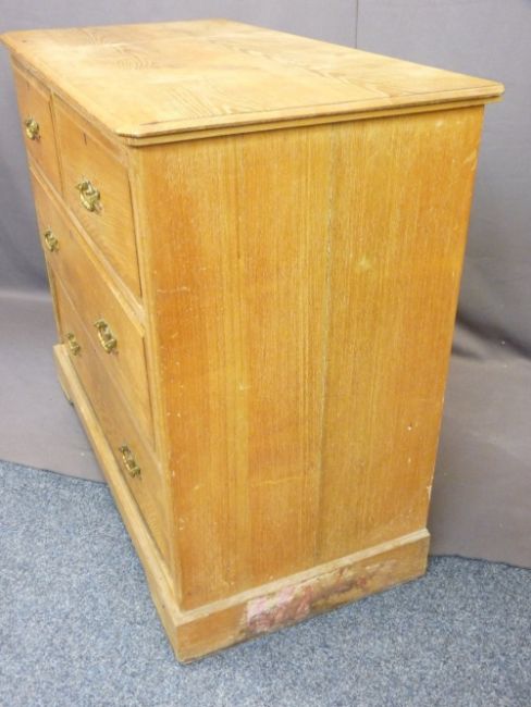 CIRCA 1900 OAK CHEST OF TWO SHORT OVER TWO LONG DRAWERS - having brass backplates and swing handles, 91cms H, 107cms W, 53.5cms D