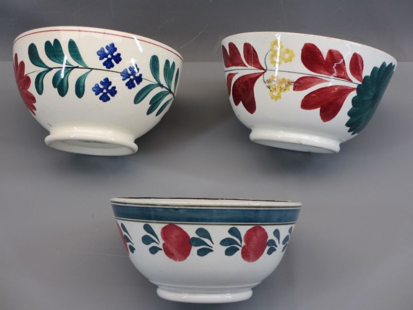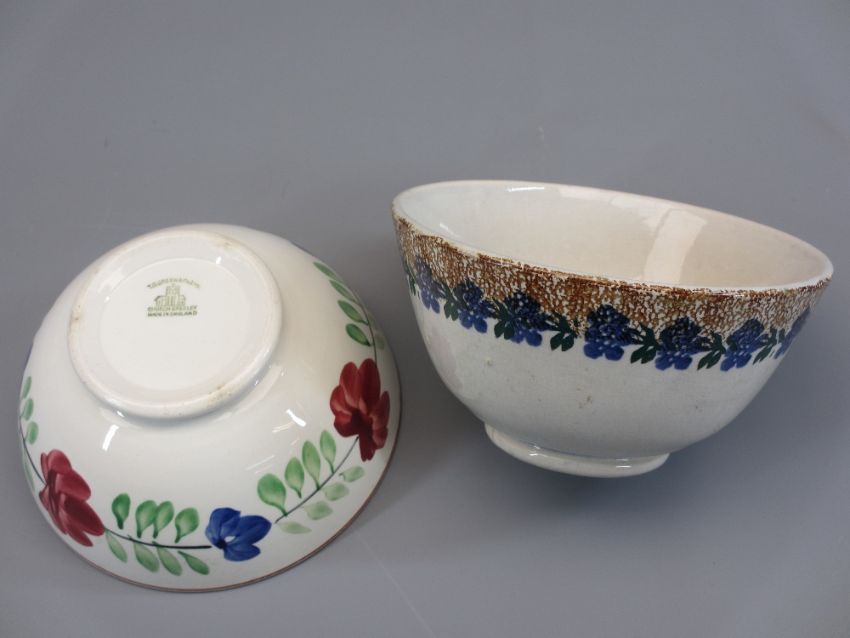 SPONGEWARE & FLORAL TYPE PEDESTAL BOWLS (8) - various sizes, some by T G Green from 12cms diameter to 18cms diameter