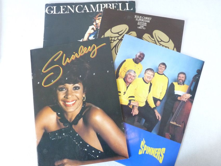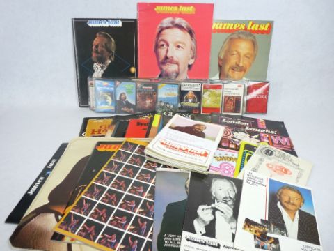 MUSIC & THEATRE MEMORABILIA, the bulk relating to James Last, including sixteen music cassettes, twenty five 'Appreciation Society' magazines along with concert programmes and brochures, other artists and shows include Jesus Christ Superstar, The Spinners, Glen Campbell, Barnum, The Shadows, Shirley Bassey and others