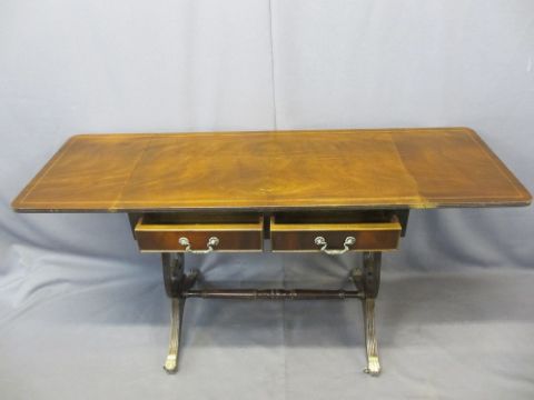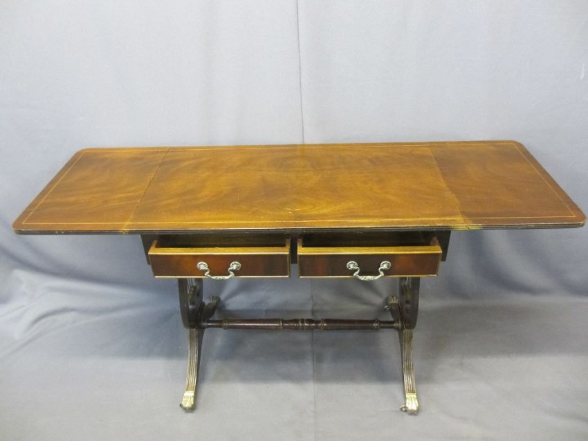 FURNITURE ASSORTMENT (2) - a reproduction sofa table with lyre ends, 75cms H, 87cms W (folded), 51cms D and an oval topped tripod occasional table