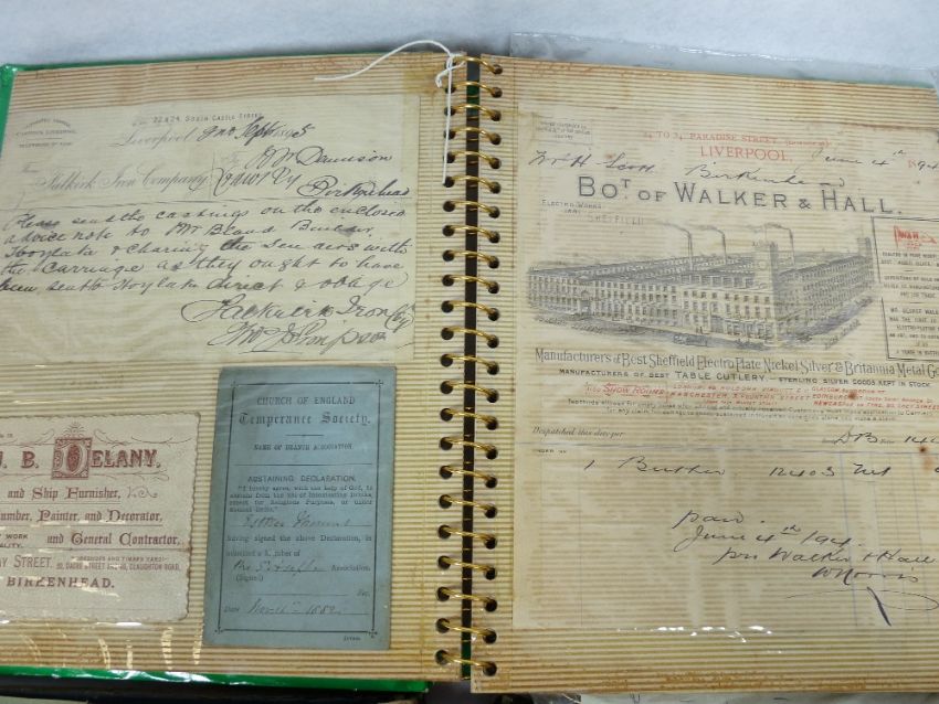 WALES VINTAGE POSTCARDS, bill heads and other ephemera, a collection in two volumes including approximately two hundred postcards and various items of late 19th/early 20th Century ephemera