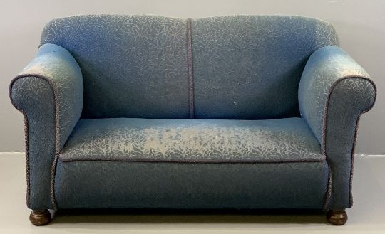 CIRCA 1930's MOQUETTE DROP ARM SOFA, 80cms H, 153cms W, 81cms D