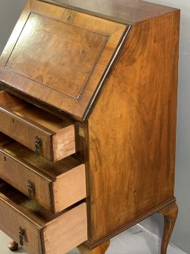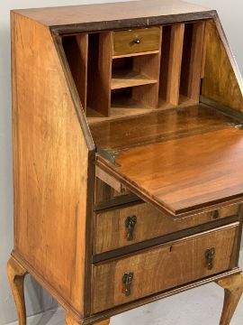 LADY'S BUREAU - three drawer base on cabriole supports, with drop down front, 102cms H, 56cms W, 43cms D