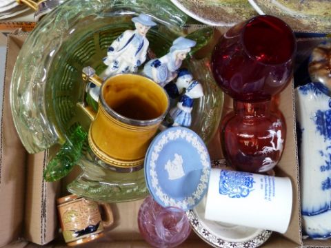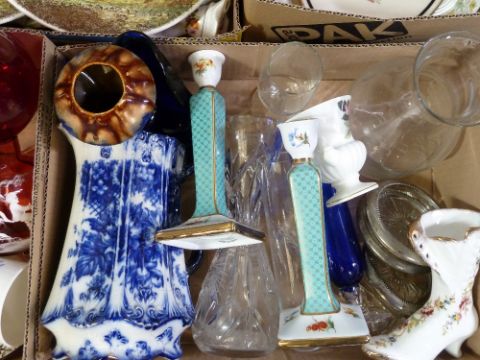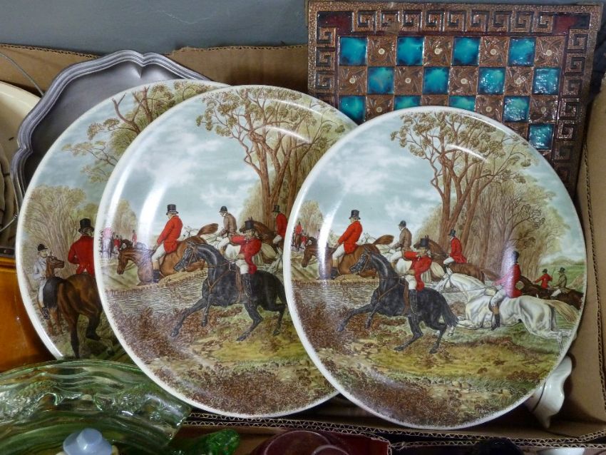 IRONSTONES HUNTING THEMED DECORATED WALL PLATES, Copeland 'Spode's Tower' plates, Mary Gregory style cranberry glass and a large assortment of similar items