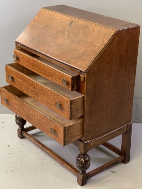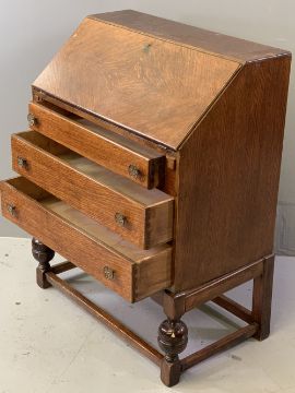 BUREAUX (2) - Art Deco style handles, on bulbous supports and with sliding interior, 106cms H, 67cms W, 45cms D and a similar bureau