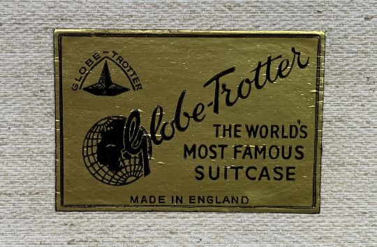 GLOBETROTTER VINTAGE SUITCASE, a Marconiphone picnic gramophone, a quantity of vinyl records on a retro rack and an old pine wooden box