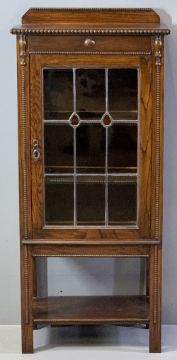 ARTS & CRAFTS STYLE SINGLE GLAZED & LEADED DOOR CHINA CABINET, 134cms H, 60cms W, 53cms D