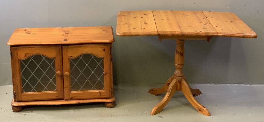 FURNITURE ASSORTMENT - modern pine gate leg table, two door cupboard, square topped occasional table and a single hooped and spindlebacked chair, also a pair of director's type canvas seated chairs