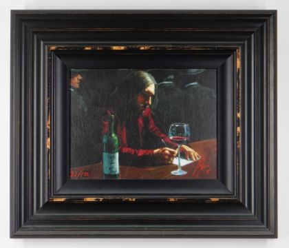 FABIAN PEREZ limited edition (22/150) giclee on canvasboard -entitled verso 'Man at Bar VII', signed and numbered, framed, 22 x 29cms