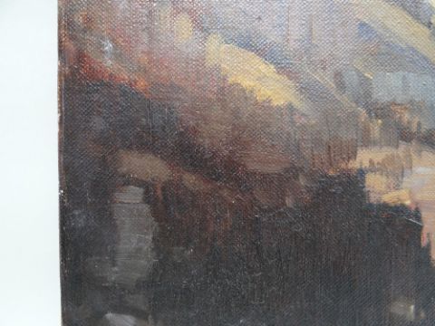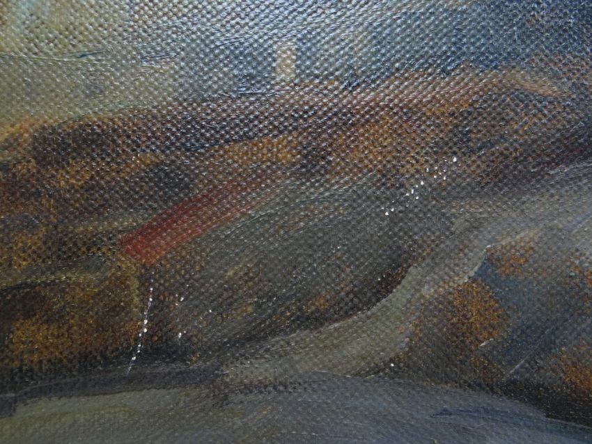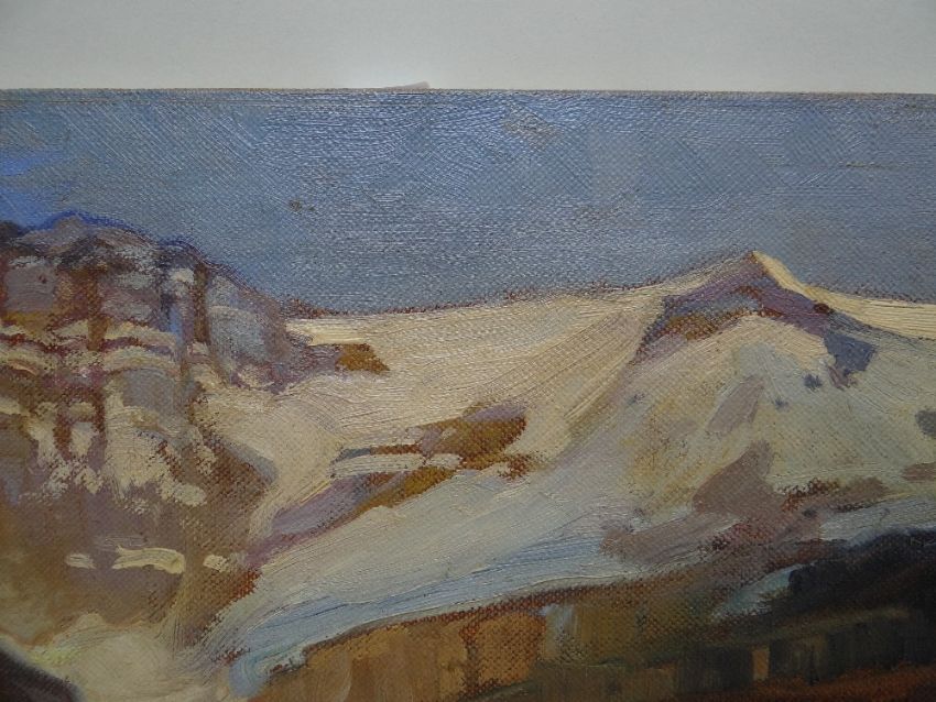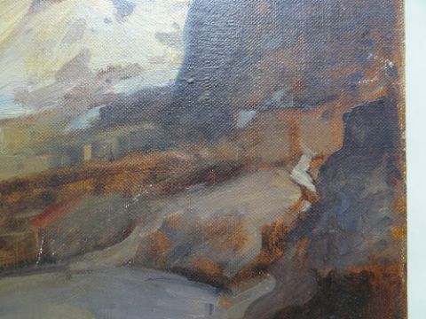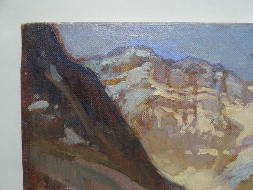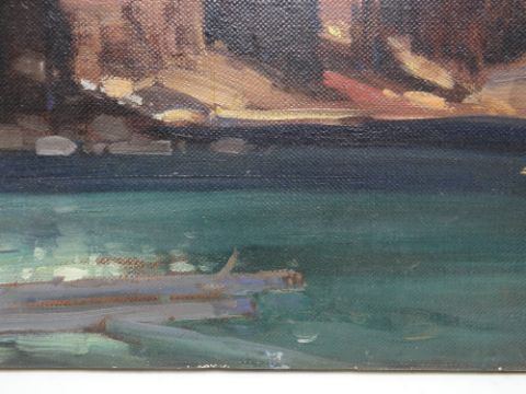 LEONARD RICHMOND (1889-1965) oil on canvas - Canadian mountainous landscape, 'Lake O'Hara', British Columbia, 51 x 61cms - nameplate available but loose Please note that this lot may be subject to Droit de Suite at 4% of the hammer price (please see terms / enquire)The picture is unframed, on canvas.I cannot see any damage, a little edge wear, nothing serious, no rips or tears, no paint loss.