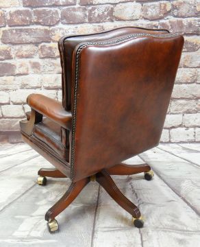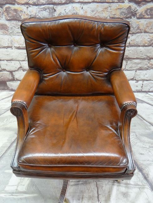 'REPRODUX' GEORGIAN-STYLE LEATHER DESK CHAIR, button upholstered in brown leather
