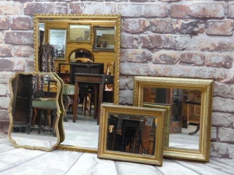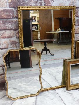 FOUR ASSORTED DECORATIVE MIRRORS, three with rectangular frames, one with shaped shell moulded frame, largest 113 x 76cms (4)