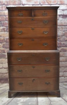 Condition: side panels shrunk, base slightly faded, top drawer fronts also shrunk across the grain.