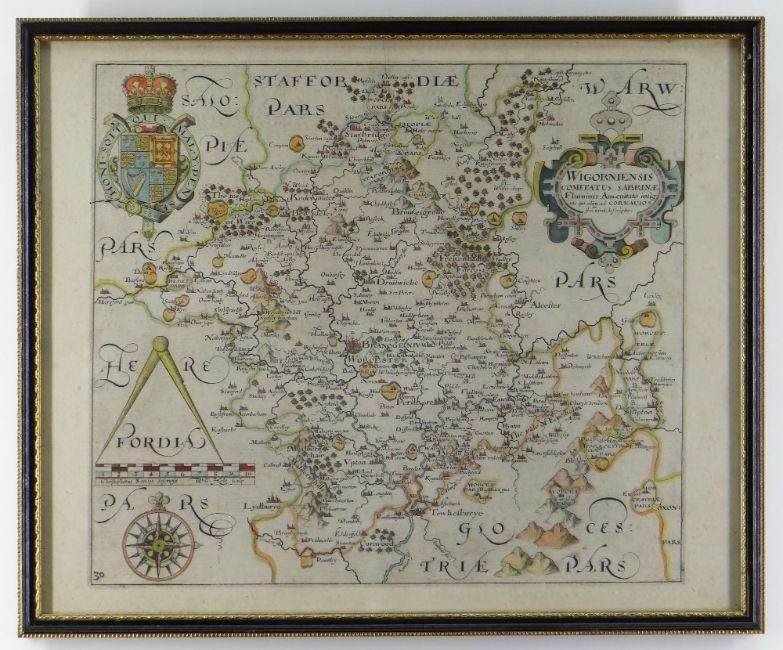CHRISTOPHER SAXTON & WILLIAM HOLE antiquarian coloured map of Worcestershire