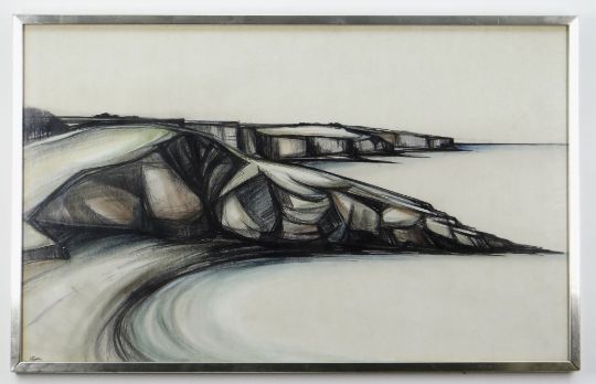 E. EUROS pastel - Glamorgan cliffs, possibly Llantwit Major, signed, 49 x 79cms