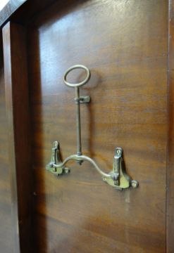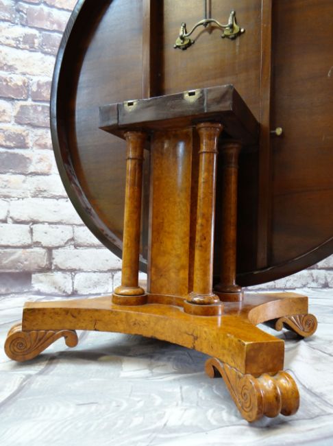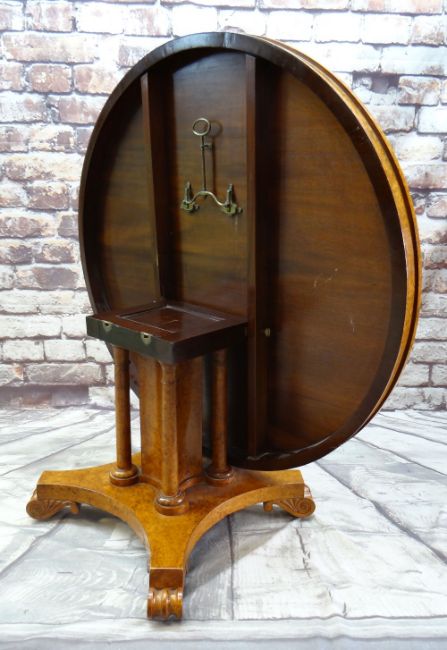 Comments: Generally restored and re polished, possibly re-veneered, tiny veneer losses to base, feet possibly formerly painted/ebonised/gilded, both bearers replaced, viewing recommended.