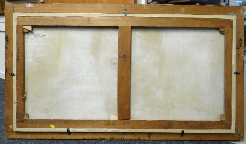 Presentation & Condition: relined, areas of repainting and restoration to tear upper right side, apparently titled and signed with initials EMW verso and under the lining