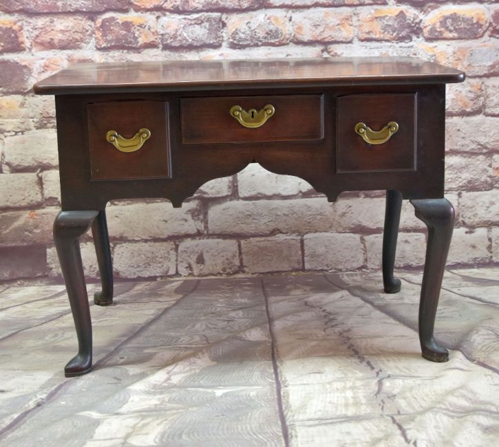 MID 18TH CENTURY MAHOGANY LOWBOY, reeded top above arrangement of three drawers and cusped under arch, cabriole legs with pointed pad feet, brass carry handles to sides, old label in drawer, 100w x 60d x 72cms h.