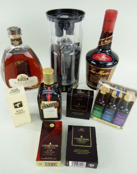 ASSORTED SPIRITS & LIQUEURS, including Hine Antique Cognac, Celtic spirit triple 20cl case, Tia Maria, Cointreau, and five boxed miniatures sets (9)