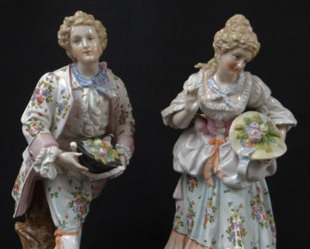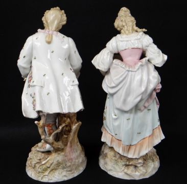 PAIR LARGE VOLKSTEDT PORCELAIN FIGURES, of Georgian rustics gathering flowers in their hats, on rockwork bases, printed marks, 37cms h. (2)
