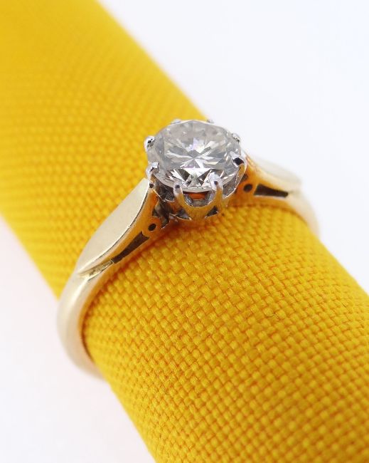 18CT GOLD SINGLE-STONE DIAMOND RING, the claw set diamond 0.4cts approx. (visual estimate), ring size J, 2.3gmscomments@ shank slightly worn/scratched. gridel of stone with 2 tiny chips, clarity good.