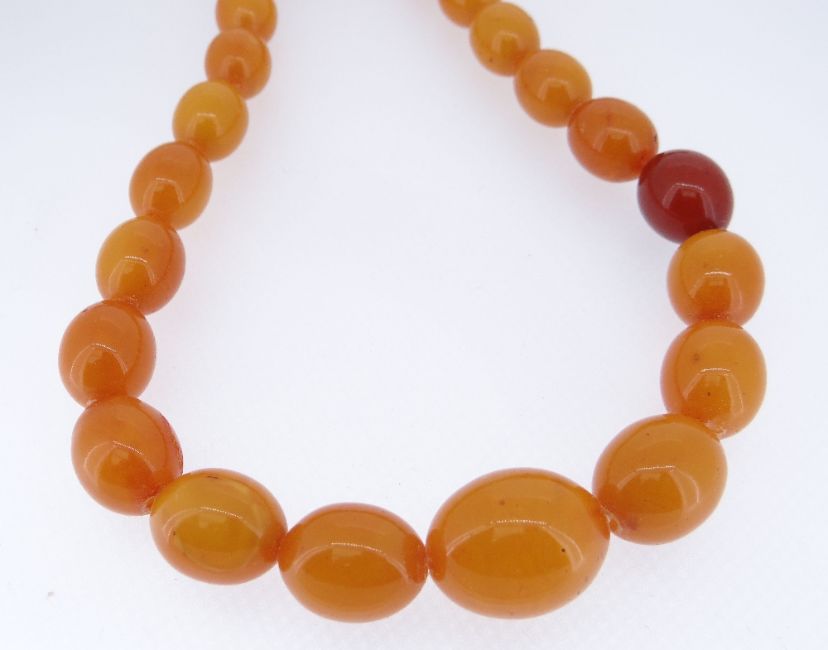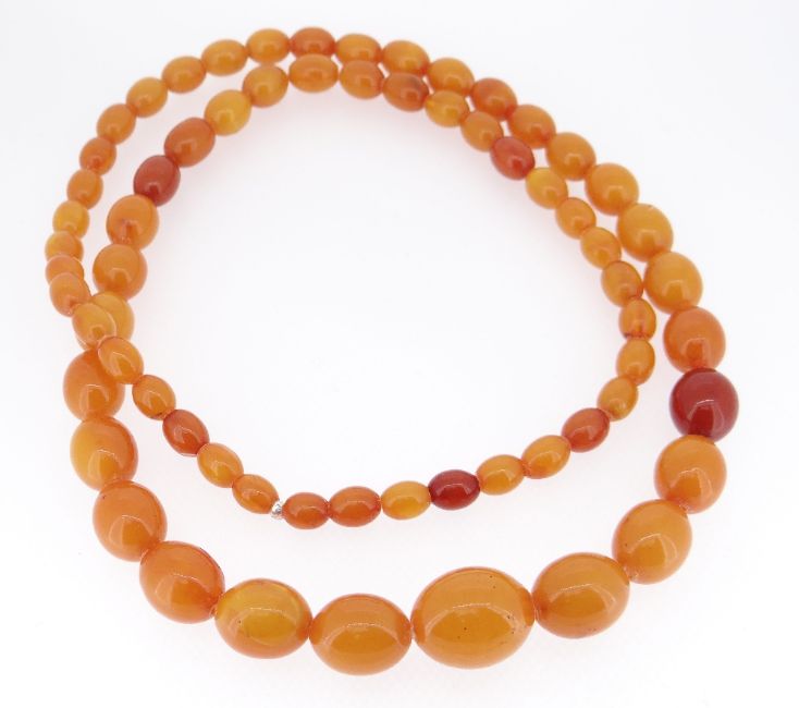 STRING OF GRADUATED OVAL BUTTERSCOTCH BEADS, 88cms long approx, 75gms approx