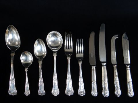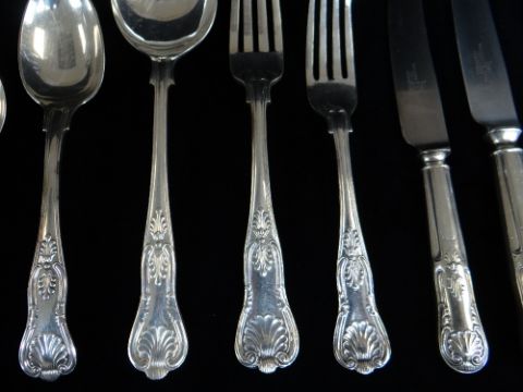 MATCHED EPNS KING'S PATTERN SERVICE, comprising twelve table forks, eight table knives, seventeen dessert forks, eight dessert knives, twelve dessert spoons, six soup spoons, six fish knives, six fish forks, five table spoons, six gateau forks, eleven ice cream spoons, various other knives ETC
