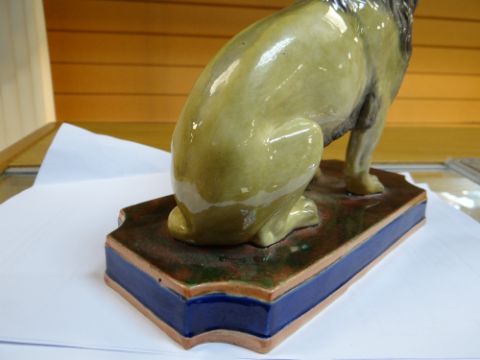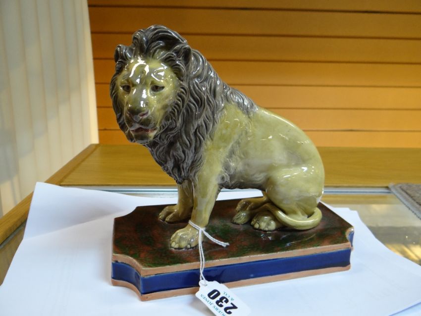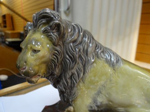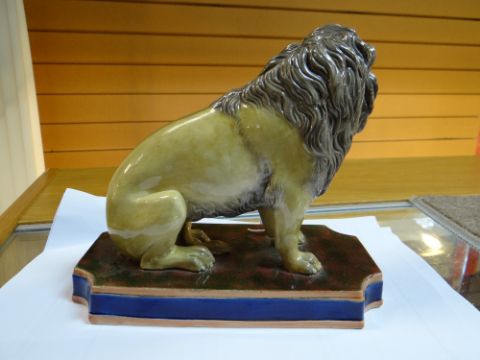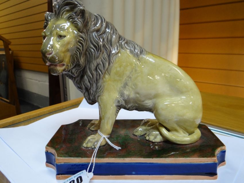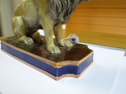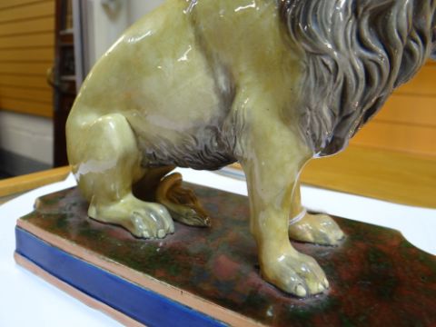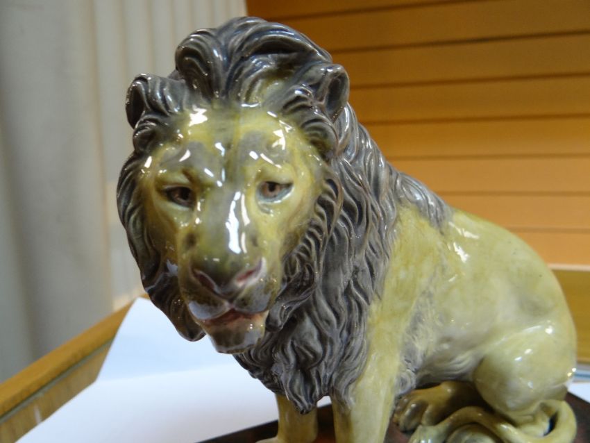 19TH CENTURY COPELAND STUDY OF A SEATED LION, on rectangular marbled plinth, marked 'Copeland' and numbered 'N75' to the underside, 18cms highComments: It looks like there has been some restoration on the front paws with overpainting thereon, possible restored cracks. Firing crack to the base.