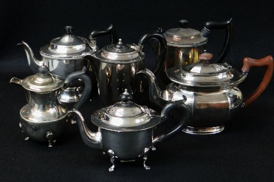 ASSORTED EPNS COFFEE & TEPOTS, including a Victorian four piece tea and coffee set with engraved 'EDT' monogram, pair of Garrard tea and hot water pots, six others various (12)