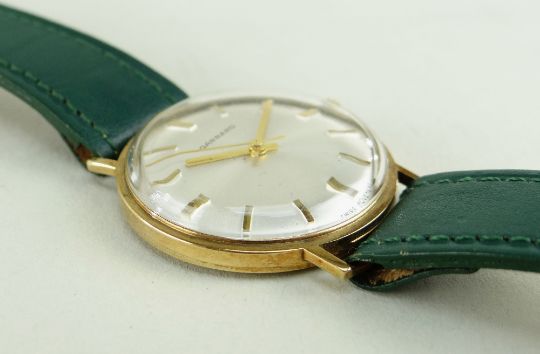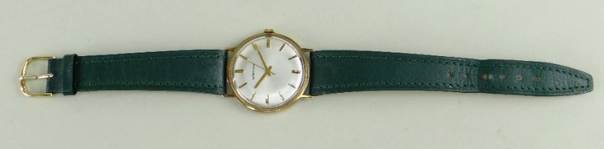9CT GOLD GARRARD GENT'S WRISTWATCH, numbered to inside back cover '13763', 34mm case diameter, later leather strap, in Garrard & Co box