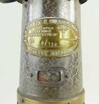 E. THOMAS & WILLIAMS LTD. MINER'S SAFETY LAMP, No. B/136, type no. , 27cms high
