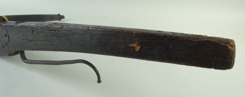 Comments: losses to base and end of stock, missing some iron fittings and bone inlay, old damage.