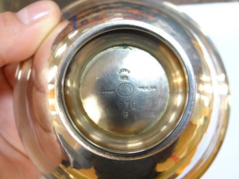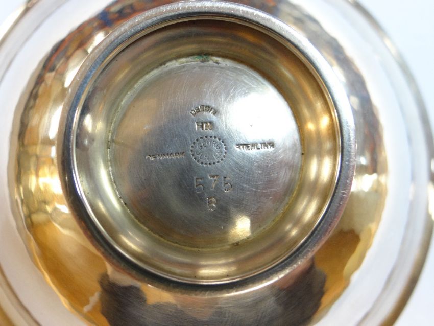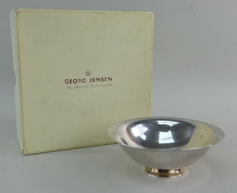GEORG JENSEN DANISH SILVER CIRCULAR BOWL, model 575B by Harald Nielsen, planished pedestal form, 10.4cms diam. in white GJ box
