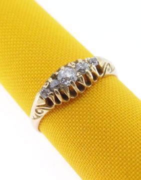 18CT GOLD FIVE-STONE DIAMOND RING, the central stone 0.2cts approx., ring size S, 3.6gms, in ring box
