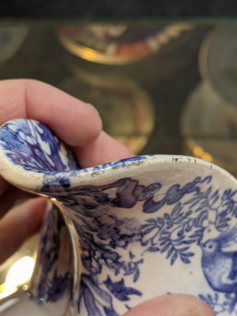 Comments: unique jug, excellent provenance, Tiny abrasion to handle edge, minute wear to spout rim.