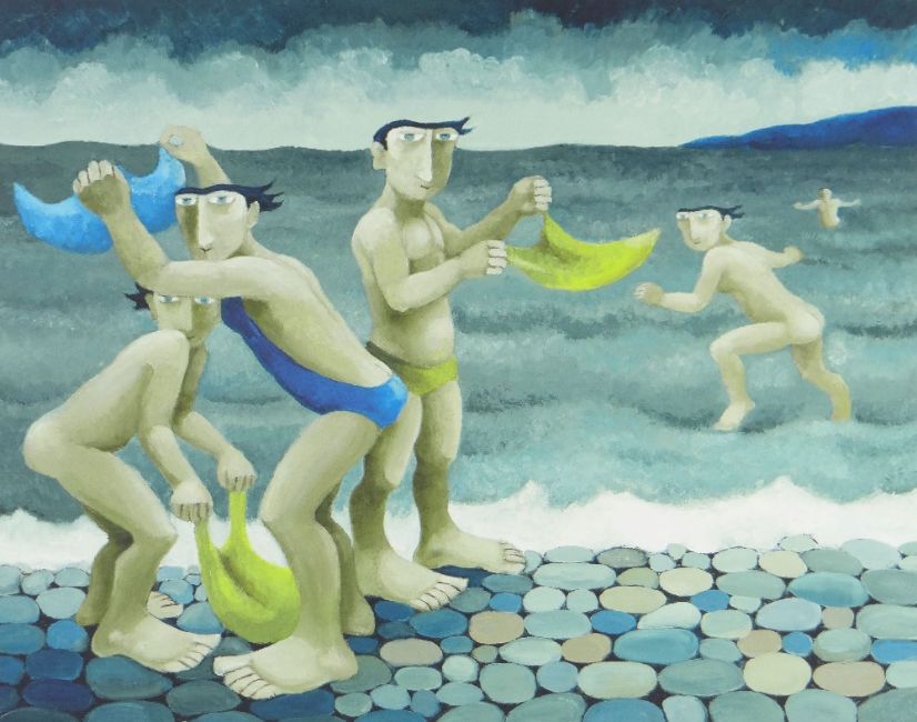 MURIEL DELAHAYE limited edition (11/195) colour print - 'At The Seaside', signed in pencil, 39.5 x 50cms