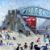 NICK HOLLY limited edition (36/50) print - The Slip Bridge, Swansea, with many figures and bus, signed, 31 x 29cms