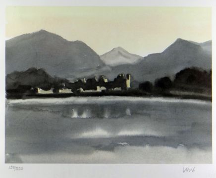 SIR KYFFIN WILLIAMS RA coloured limited edition (158/350) print - view of Caernarfon with Eryri background as seen from across the Menai Straits, signed with initials, 30 x 40cms
