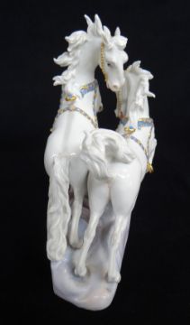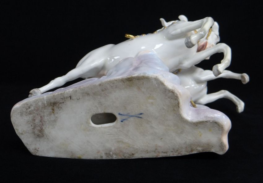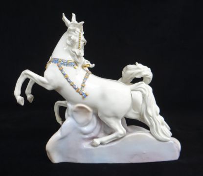 Comments: crack to one of front legs, also some evidence of restoration to legs, chips to mane, wear to gilding
