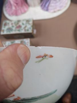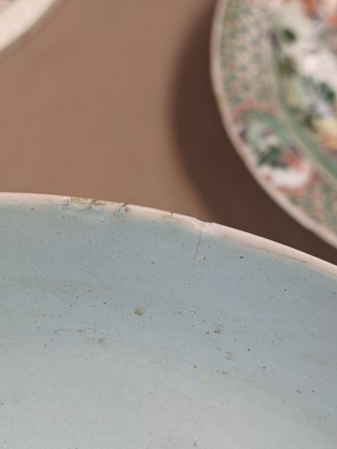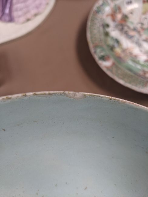 Comments: interior blue enamel very worn in places and possibly re-enamelled, some hairline cracks and chips