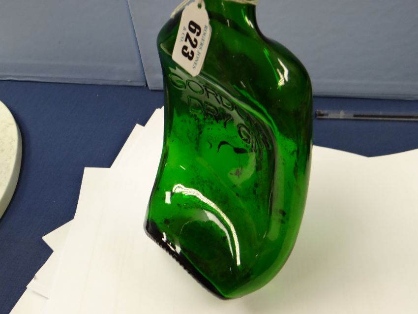 GILBERT & GEORGE (British, b. 1943 and b. 1942) green bottle glass - 'Reclining Drunk', 1973, with the artists logo, the title and number 27 of 200 etched on the reverse, published by Nigel Greenwood Gallery, 22.8cms long