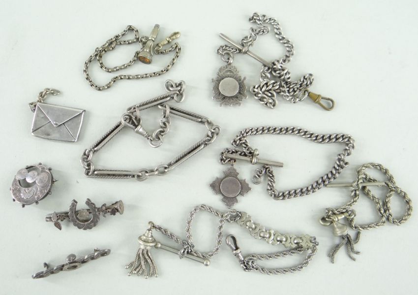 ASSORTED SILVER comprising stamp holder in the form of an envelope, various silver bar brooches, pendants on chains ETC