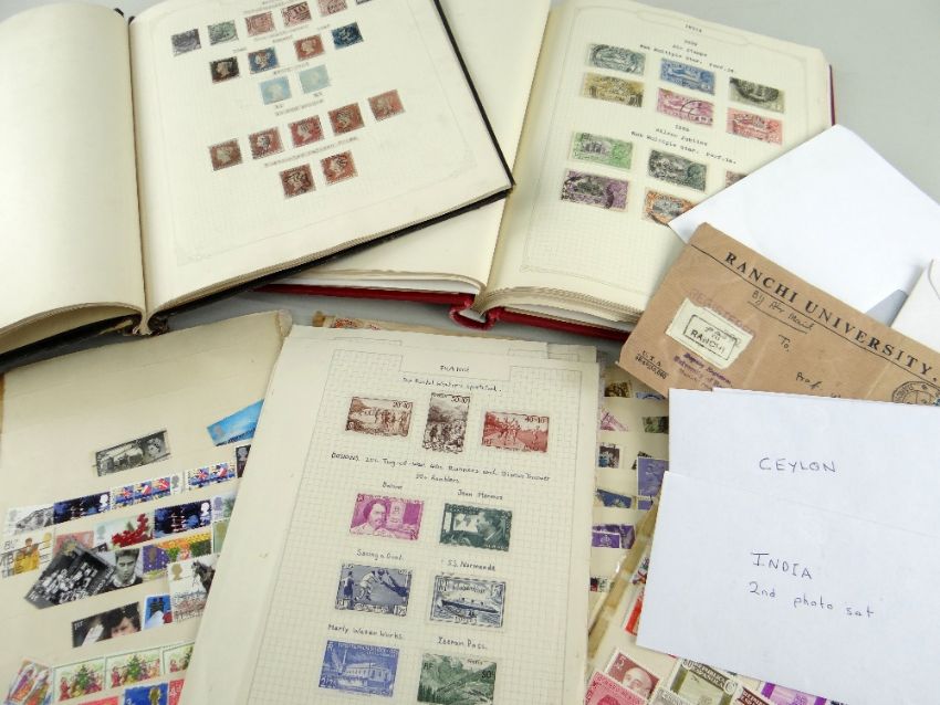 STAMPS: GB & ALL WORLD STAMPS comprising black album containing mid Victorian to mid 20th century GB stamps including many 1d red stamps, red Simplex album containing all world stamps including Indian, South Africa, New Zealand, Canada together with loose stamps