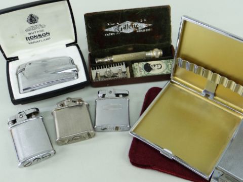 ASSORTED VINTAGE CIGARETTE LIGHTERS, including boxed Ronson Varaflame, boxed Ronson 'Wirlwind', Colibri, Stroll, boxed Benlow combination case, and a vintage Gillette razor